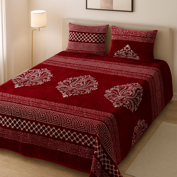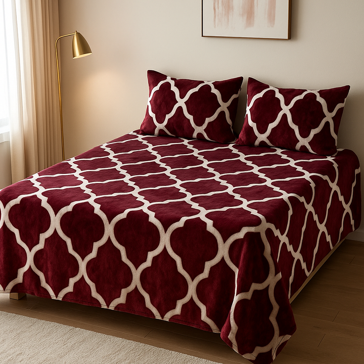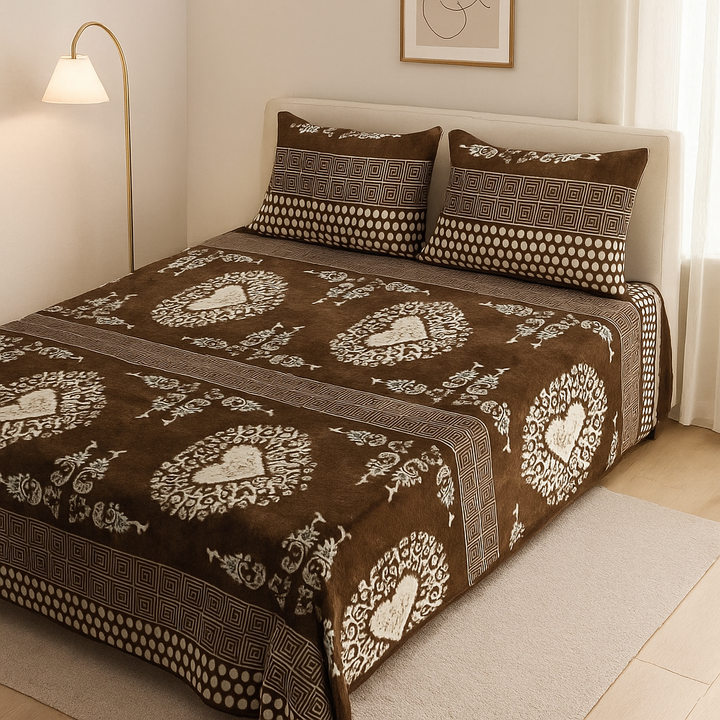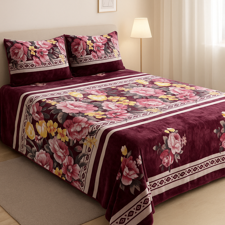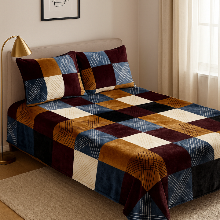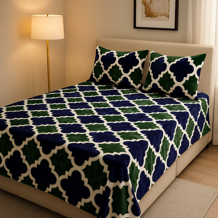 This Comforah fleece bedsheet set is perfect for cold winter nights, offering a soft, warm, and plush texture that enhances both comfort and style.